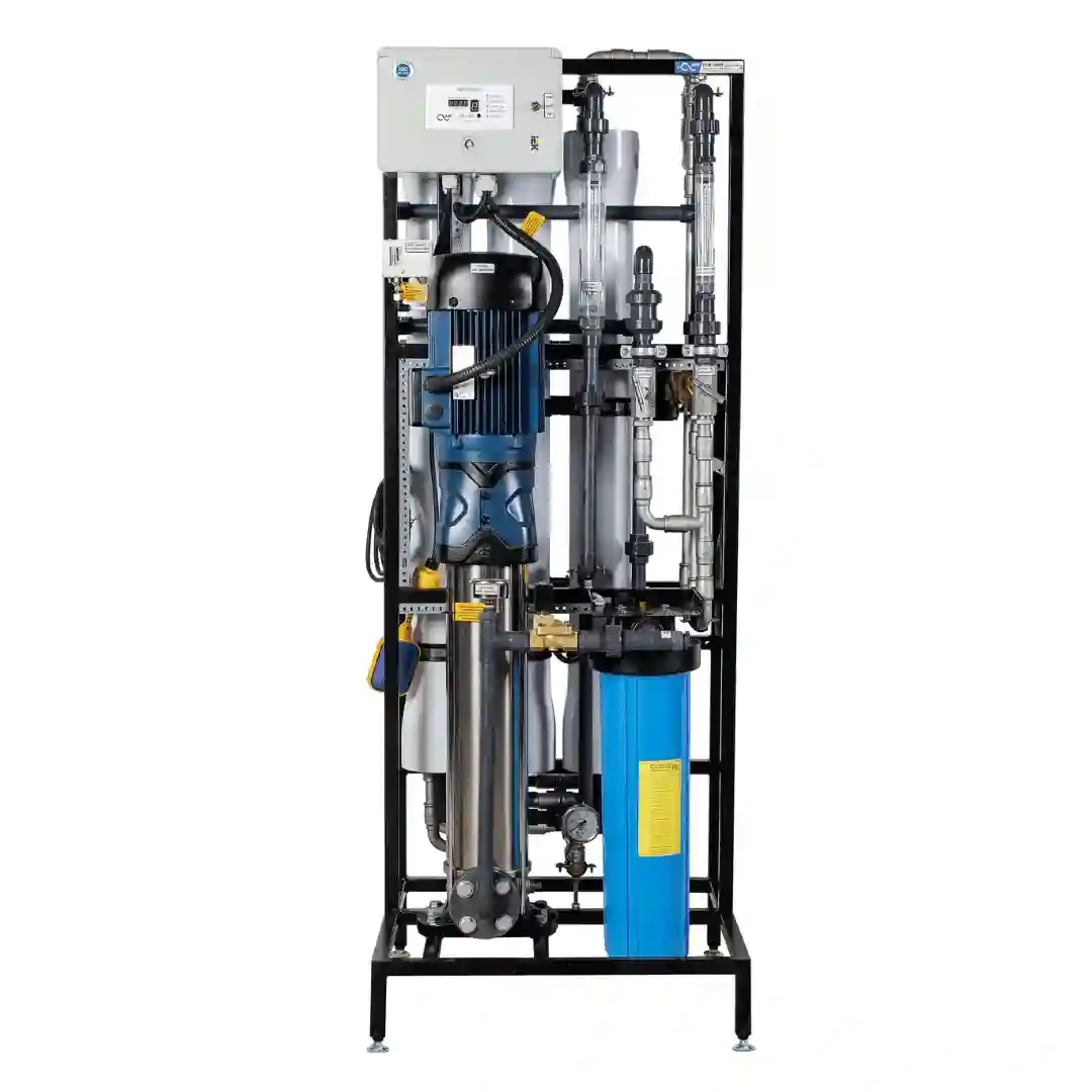 Системы обратного осмоса серии ROB предназначены для глубокой очистки и обессоливания солоноватой воды прибрежных морских зон и скважин, а также очистки стока (степень очистки до 99,5%) с целью дальнейшего использования в качестве питьевой воды или для технологических нужд. Системы работают под высоким давлением (до 20 бар) с полной автоматизацией процесса. Контроллер управления с индикацией и остановкой из-за аварий по давлению и электропроводности. Предусмотрена защита насоса от «сухого хода».