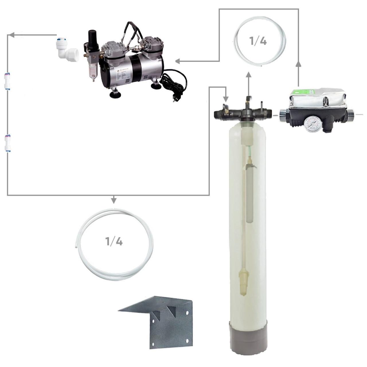 Напорная аэрация подразумевает отсутствие потери давления в трубопроводе. При напорной аэрации воды воздух при помощи компрессора или эжектора подается в трубопровод. Далее водо-воздушная смесь подается в контактную камеру: напорный корпус или на статический миксер, обеспечивающий необходимое время контакта. Из контактной камеры вода поступает на систему фильтрации практически без потери исходного давления. При использовании напорной аэрации воды в верхней части контактной камеры устанавливают воздухосбросный клапан для удаления лишнего воздуха и удаленных из воды газов. Контактная камера, распределительный оголовок с трубками и восдухосбросный клапан в сборе называются аэрационной колонной. Brio 2000 – аппаратура, позволяющая автоматизировать пуск и останов электронасоса в зависимости от понижения давления (открытие кранов) и от остановки потока в системе (закрытие кранов), на которой она установлена. Brio 2000 M выполняет важную функцию останова насоса при отсутствии воды, защищая его от вредной работы в су