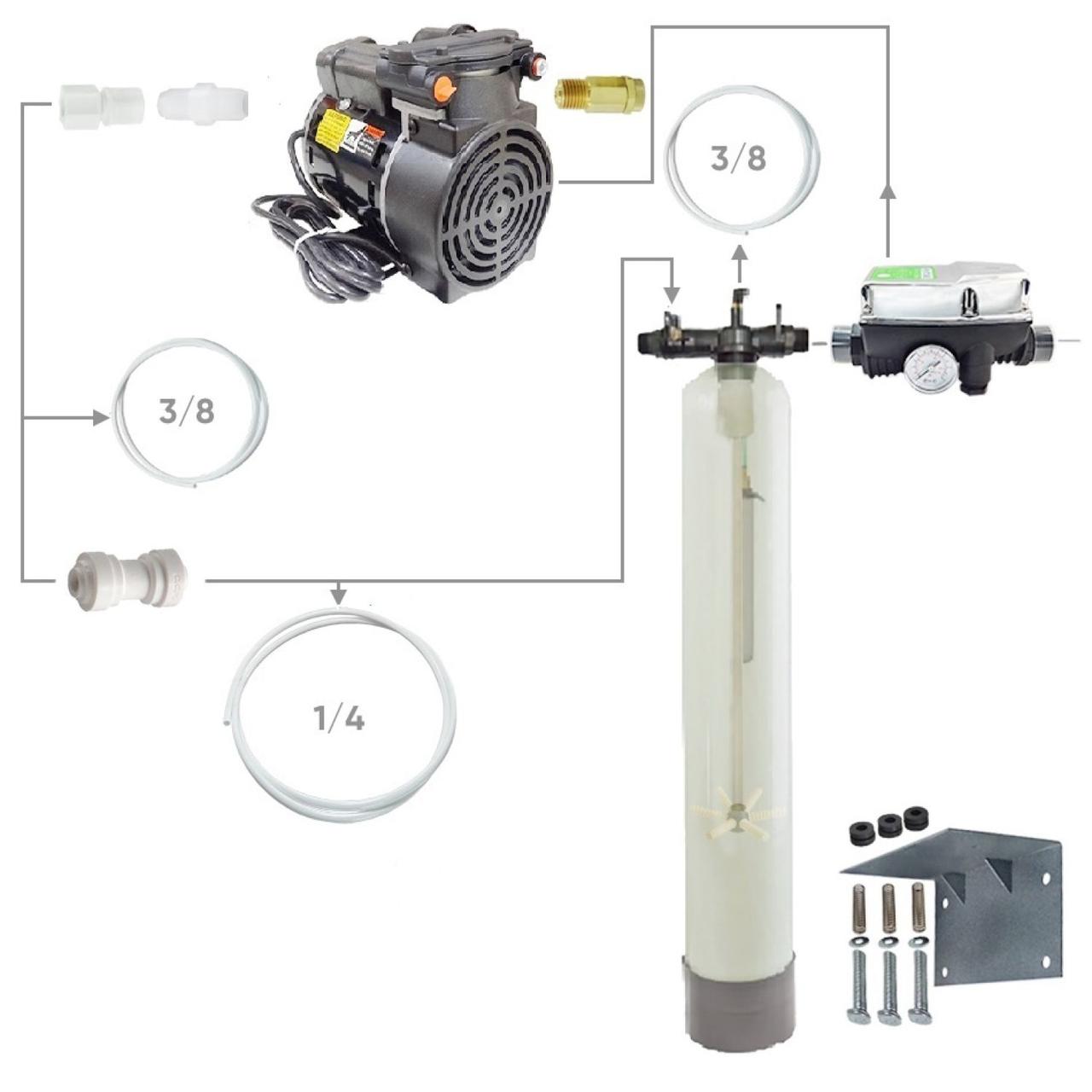 Напорная аэрация подразумевает отсутствие потери давления в трубопроводе. При напорной аэрации воды воздух при помощи компрессора или эжектора подается в трубопровод. Далее водо-воздушная смесь подается в контактную камеру: напорный корпус или на статический миксер, обеспечивающий необходимое время контакта. Из контактной камеры вода поступает на систему фильтрации практически без потери исходного давления. При использовании напорной аэрации воды в верхней части контактной камеры устанавливают воздухосбросный клапан для удаления лишнего воздуха и удаленных из воды газов. Контактная камера, распределительный оголовок с трубками и восдухосбросный клапан в сборе называются аэрационной колонной._x000D__x000D_ Brio 2000 – аппаратура, позволяющая автоматизировать пуск и останов электронасоса в_x000D__x000D_ зависимости от понижения давления (открытие кранов) и от остановки потока в системе_x000D__x000D_ (закрытие кранов), на которой она установлена. Brio 2000 M выполняет важную функцию останова насоса при отсутствии воды, защищая его от вредной работ